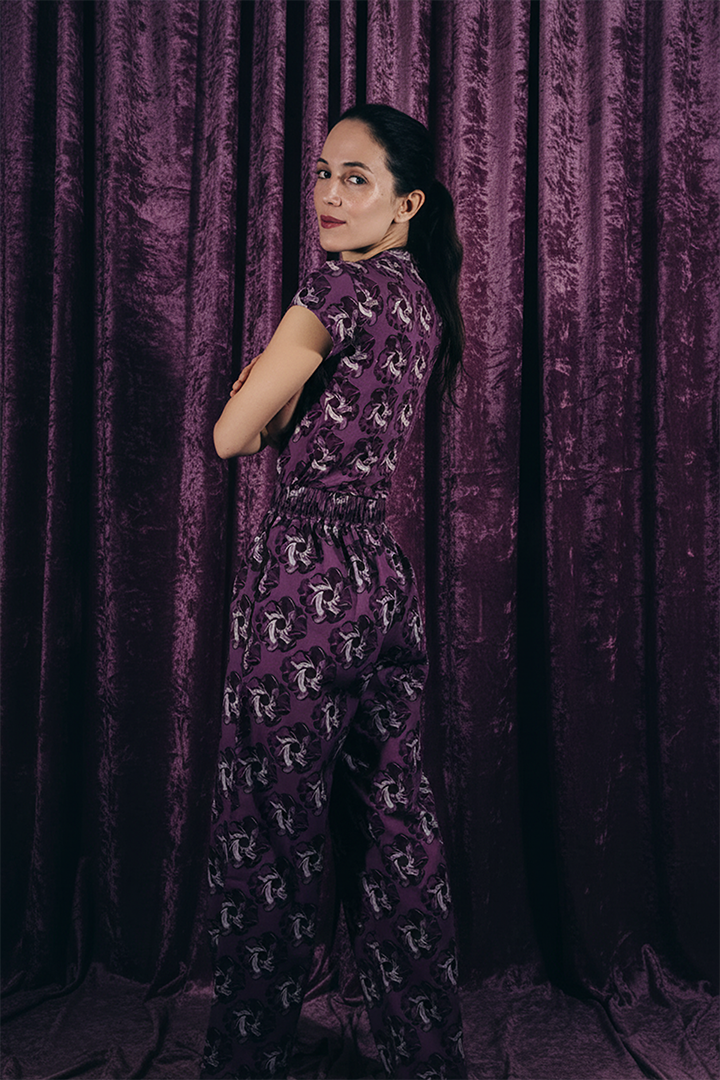 Vivid yet soft, this cotton spandex t-shirt combines comfort and color in perfect harmony. The plum-inspired hue adds a playful sophistication to your wardrobe — ideal for pairing with stripes, denim, or the matching pants.