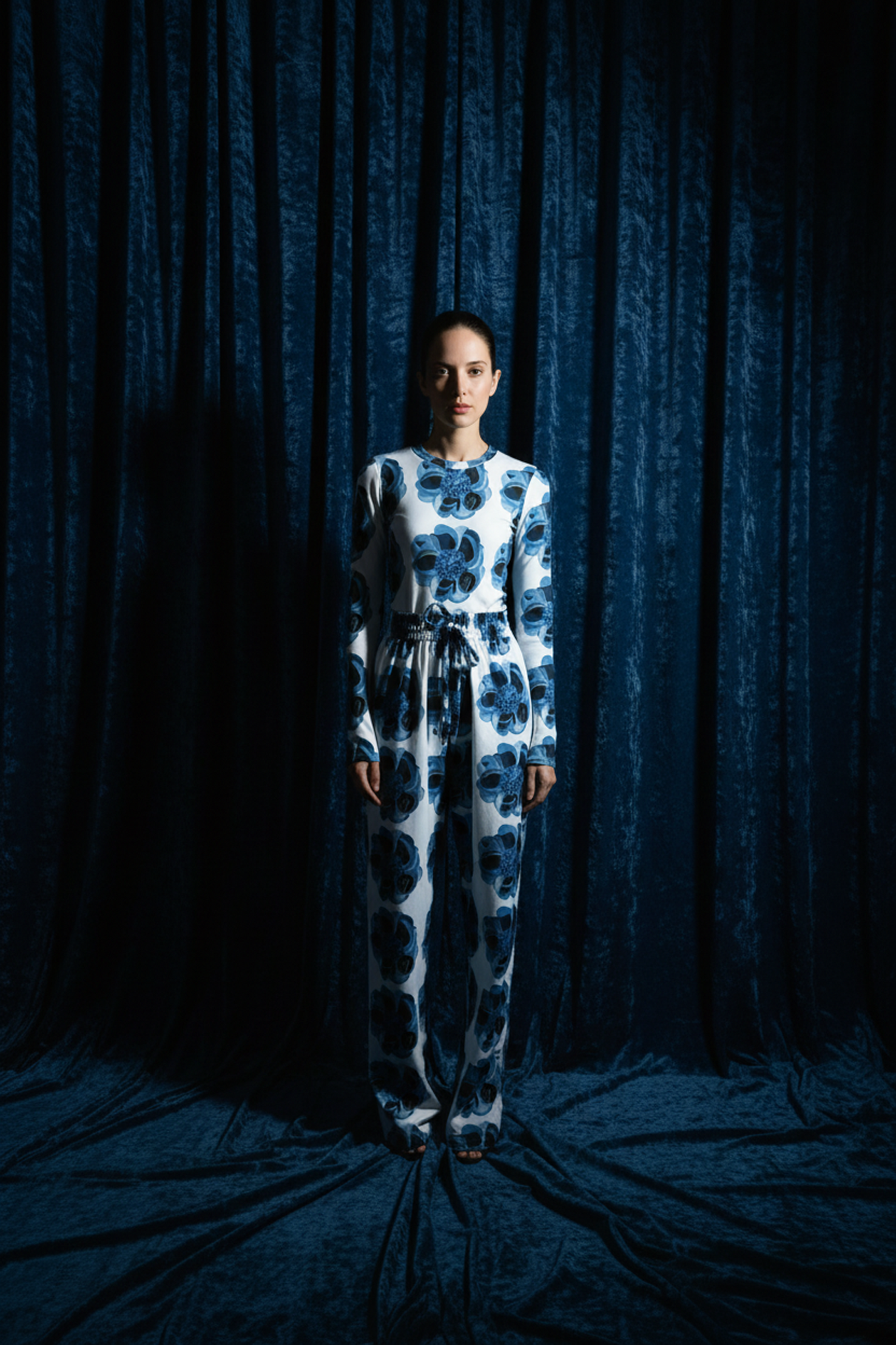 Refined and relaxed, this long-sleeve top brings a sophisticated twist to your everyday wear. The soft stretch jersey drapes gently, while the deep blue shade adds a sense of calm strength — a perfect layering piece for the season.